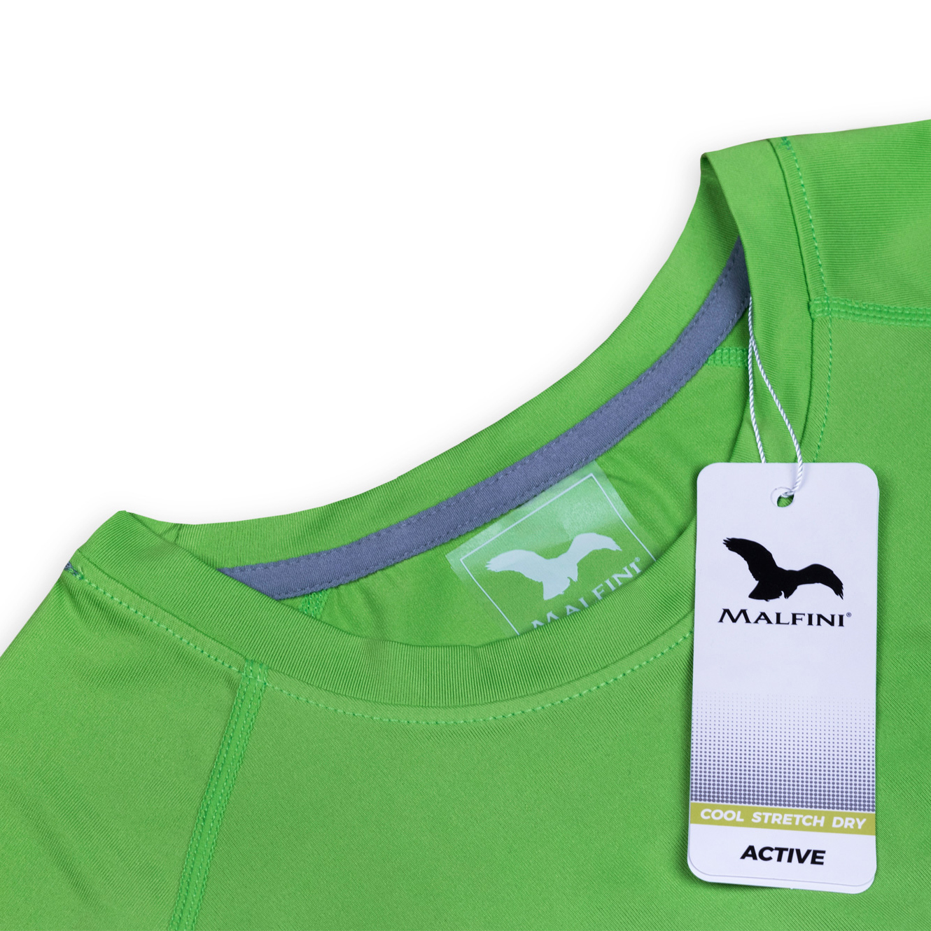 Pánské sportovní tričko prémiové kvality s krátkým raglánovým rukávem, mírně prodlouženým zadním dílem a s kulatým průkrčníkem. Střih je tvarovaný bočními díly a má dekorativně prošité ploché švy. Hladký strečový rychleschnoucí materiál zajišťuje odvádění potu a udržování tělesné teploty. Tričko se hodí na individuální sportovní trénink nebo na sportovní akci. Doporučujeme nosit tričko přímo na tělo, proto objednej raději o velikost menší.